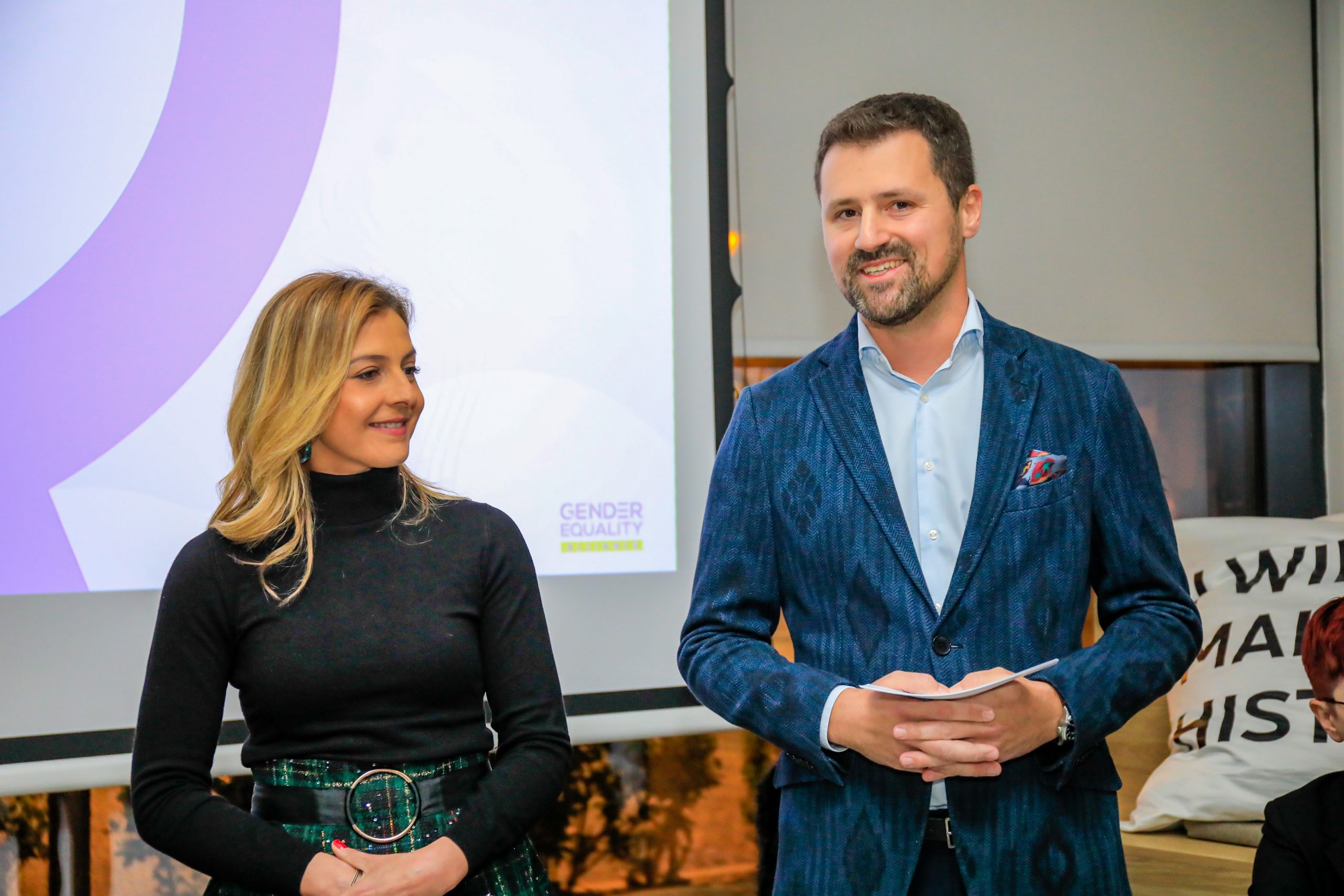 Претседателката на Асоцијацијата за е-трговија на Македонија и Алијансата за родова еднаквост, Д-р Нина Ангеловска потенцираше дека компаниите треба да преземат водечка улога во промовирањето на родовата еднаквост на работното место, како и да бидат пример за другите.