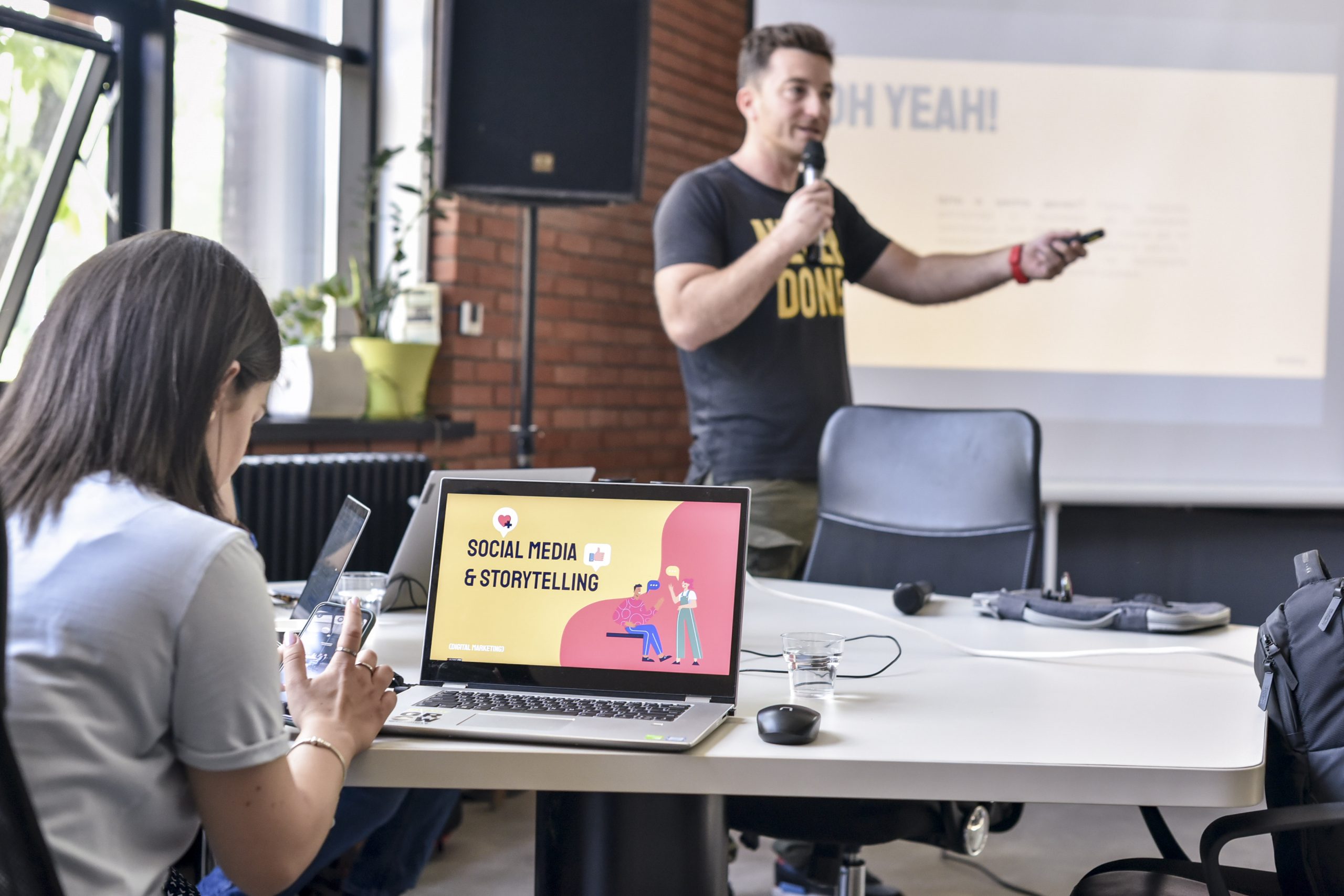 На оваа обука предавач беше Мартин Китановски, co-founder на Grouper.mk и страствен маркетер за кого размислувањето out of the box е начин на секојдневното функционирање. Во своето 4 часовно предавање на тема „Social Media Marketing & Storytelling“, Мартин ги деконструираше маркетингот и storytelling-от до најситни единици зборувајќи за зборот и поимот маркетинг и неговите фундаменти, даде објаснување за социјалните медиуми и начините на кои тие функционираат, зборуваше на тема: зошто Content is King и зошто storytelling-от ја има една од најважните, но некогаш и најважната улога во маркетингот. На присутните им пренесе како да направат план и стратегија за објавување на content, но и каков content треба да се објавува во даден момент. Колку се важни конзистентноста во работењето и креативноста при создавањето и комуникацијата со клиентите. Мартин во своето предавање ги вклучи едни од најдобрите маркетинг кампањи/реклами од последниве години: The Gentleman’s Wager рекламата за Blue Label, Be Stupid кампањата на Diesel, Privacy on iPhone кампањата на Apple и многу други преку кои на присутните им даде конкретни примери за тоа како креативното размислување и создавањето на добра приказна можат да им го пренесат духот на брендот на постојаните и идни клиенти.
